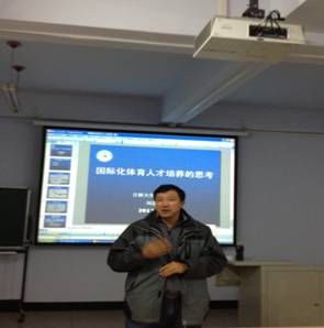 刘教授在报告中对我国面向国际化学科建设的现状、面向国际化教育出现的问题、高等教育国际化发展战略进行了详细的分析和解读。此外,刘教授还以自身留学经验阐述了培养国际化体育人才要具备的几个要点。一是构建两主线(语言能力、体育能力)、三结合(理论与实践结合、专业能力与社会实践结合、学生科研活动与教师科研活动结合)、四平台(语言展示交流平台、运动实践教学平台、国际交流拓展平台、网络沟通平台)的人才培养框架体系;二是建立与国际体育人才培养相接轨的学科建设体系即体育学科群;三是建立具有国际水准的导学机制;四是建立高水平的国际交流基地。