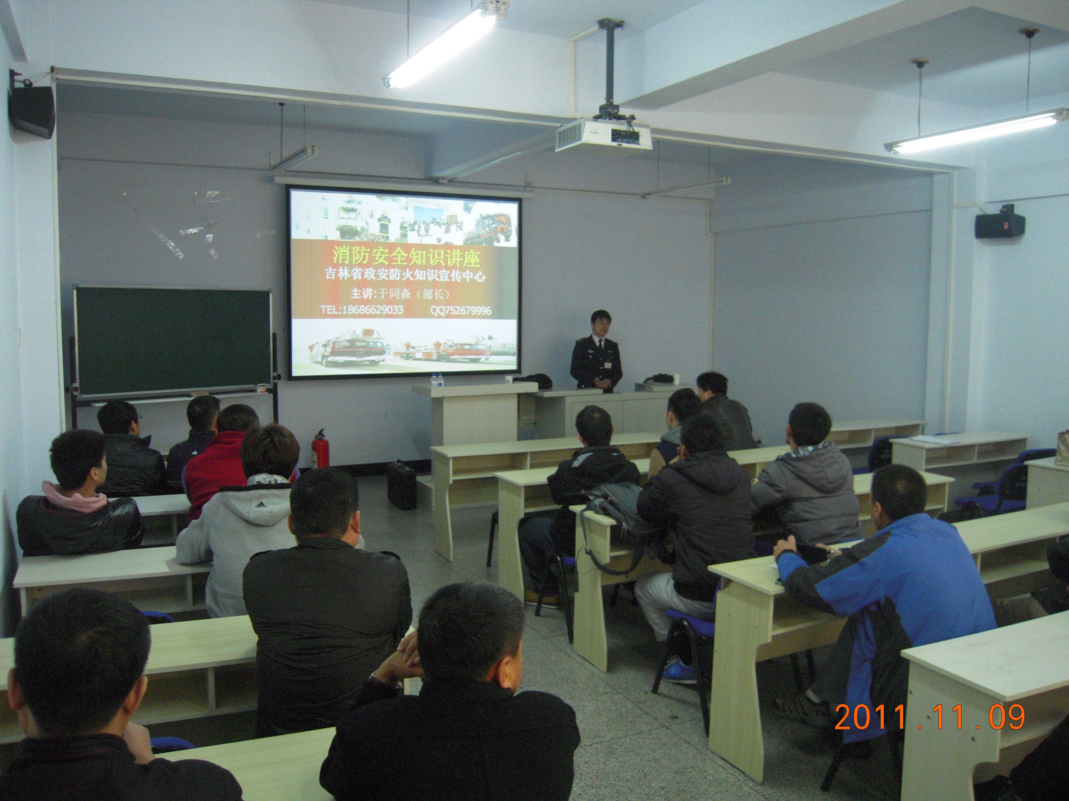 邀请长春市政安防火知识宣传中心教官于同森为师生进行的普及消防知识报告会,极速赛车