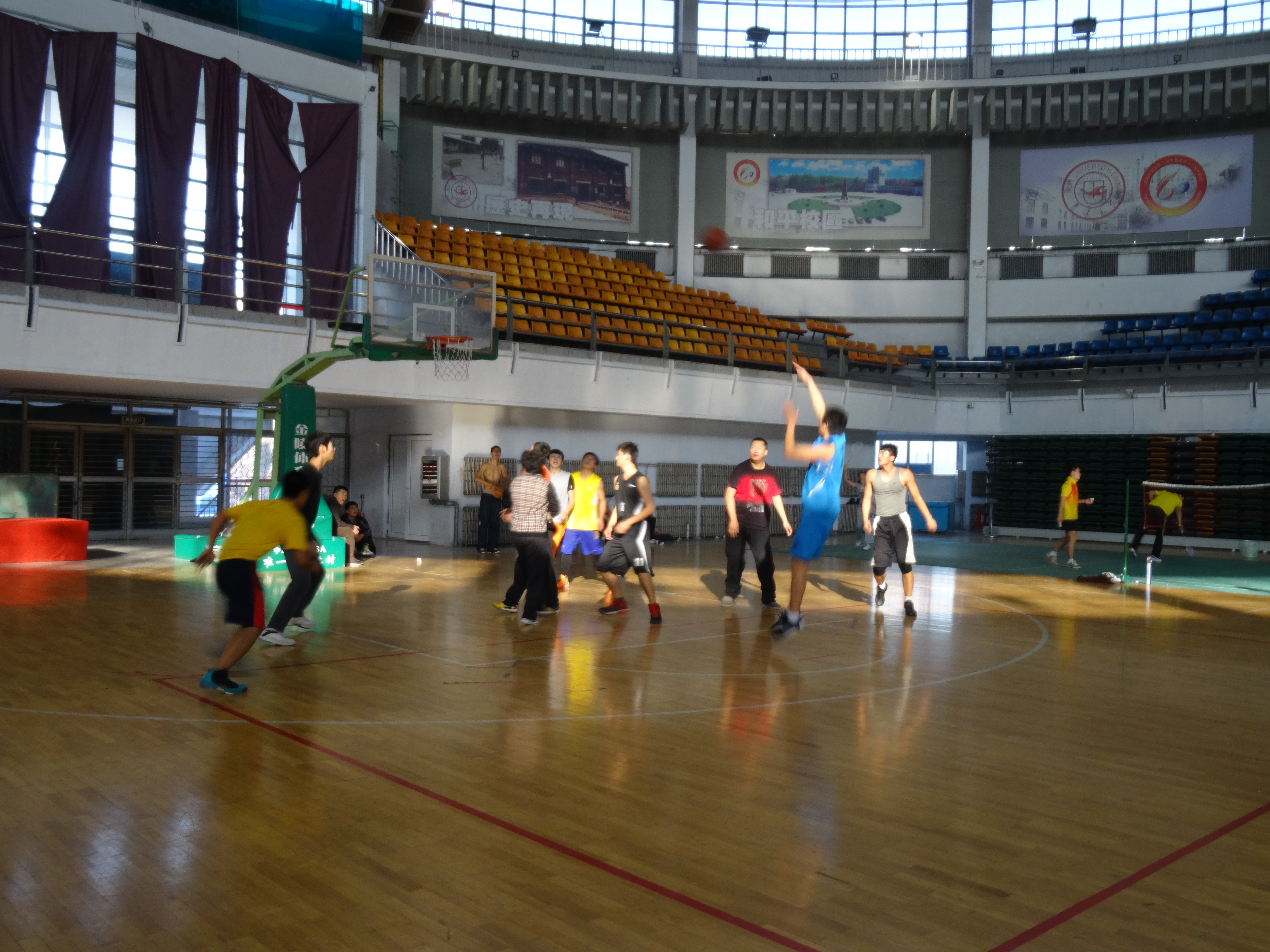 2013级研究生在体育馆篮球场举行了一场篮球对抗赛,比赛双方分别是2年制研究生和3年制研究生。