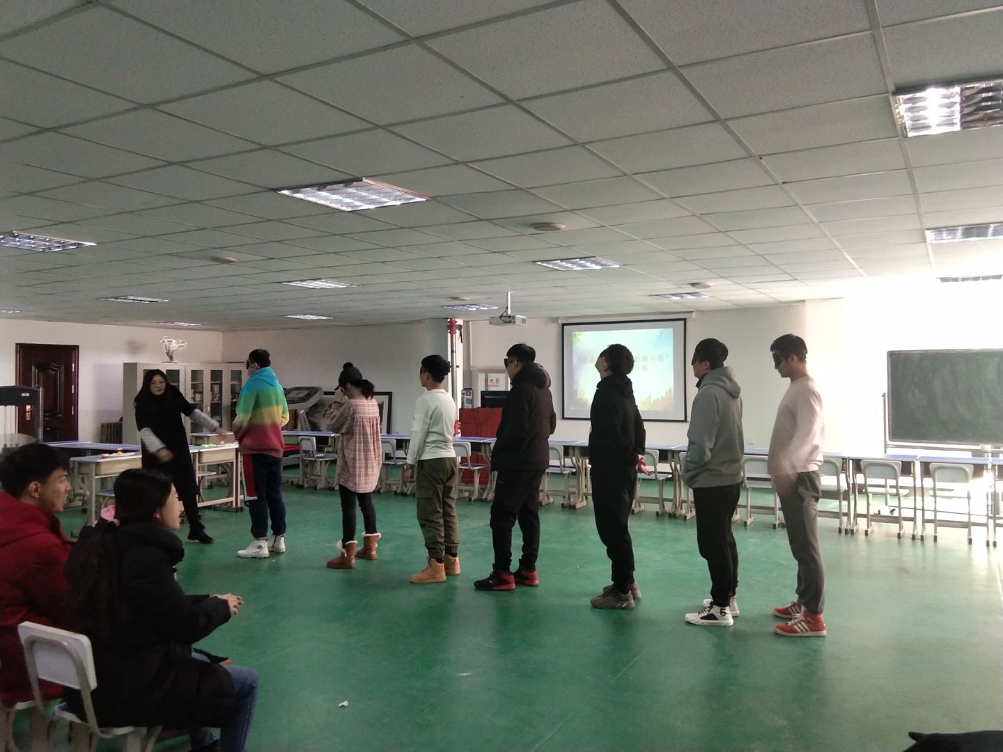此次活动共进行4个游戏。第一个游戏“记忆考验”,从第一个人开始说"我来自长春"类似这种介绍自己的内容。第二个人重复第一句“我来自长春”并添加一句介绍自己的话。这样一直传下去,每传一个人就必须重覆前面的,另加新的一句。以此游戏进行热身,增进彼此了解。第二个游戏“捆绑接力”每队中两人一组,两个人同侧手臂和脚踝绑在一起,接力完成任务。同学们积极参与,并且在游戏过程中寻找最短时间内完成任务的办法,增强了沟通和交流。在游戏过程中逐渐建立相互信任、相互接纳的关系,学会互相配合、支持和协作。第三个游戏“传声筒”所有成员带上眼罩。从第一名队员开始将看到的词语在规定时间内用动作表达,将词语意思传达给第二名成员,第二名队员在传达给第三名队员,以此类推。最后一名成员说出猜想的词语,全场不允许语言沟通。此游戏把此次活动推向了高潮,大家比手划脚,开动脑筋,创造性的发挥个人智慧,想尽一切办法将看到的词语传给下一名同学,场内氛围十分热闹。此游戏引导大家学会共同克服困难,解决共同面临的问题,充分体会团结、合作的力量。最后一个游戏,“纸牌接力”大家轮流接力翻牌,直到纸牌按照顺序排列摆出。再进行此项游戏前,大家商量游戏战略,讨论十分激烈。