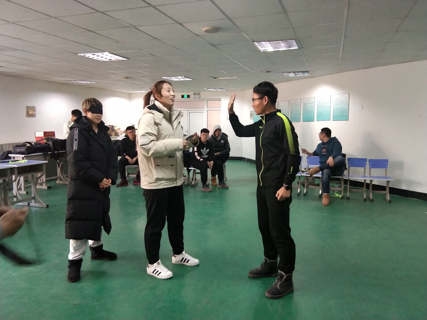 学生营造温暖、和谐的环境氛围。此次活动结合集体凝聚力训练和心理健康教育宣传。在锻炼身体的同时缓解大家学业压力,引导学生换位思考,让他们认识到责任与信任是相互的。学会共同克服困难,解决共同面临的问题。希望同学们在未来的学习生活中相互协助,充分认识自我,可以理性从容地规划硕士生活。