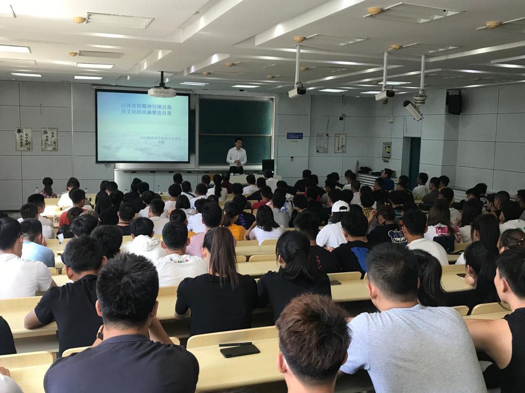 会上,裘鹏院长以“以体育的精神引领自我,用文化的内涵塑造自我”为题,从体育精神和体育文化两方面出发,结合极速赛车