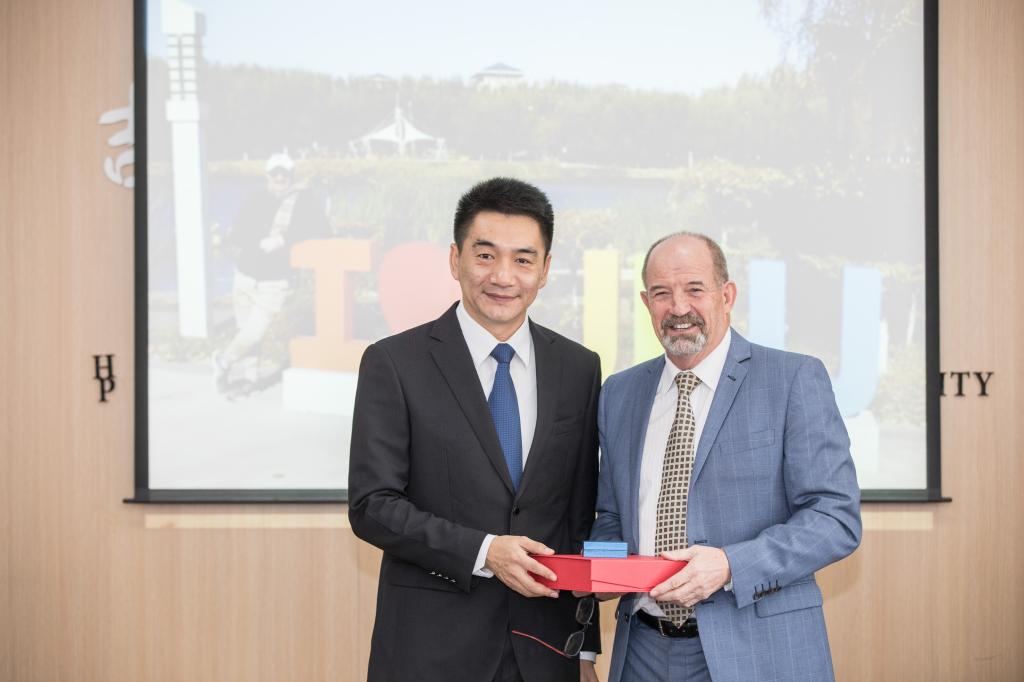 院长裘鹏及领导班子成员就如何与澳大利亚南昆士兰大学在本科生联合培养、教师互访、硕士和博士研究生短期交流、教师科研能力拓展等方面开展交流合作与彼得·特里教授进行了深入交流和探讨。与会教师也与彼得·特里教授就其研究领域的相关问题进行了充分交流。双方互赠礼物表达友谊。座谈会在热烈的气氛中圆满结束。
