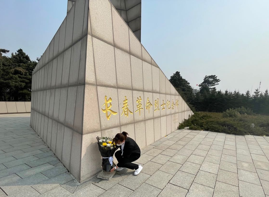 到达烈士陵园后,按照活动安排,首先前往革命烈士纪念碑,由宫勖能老师组织全体师生瞻仰革命烈士纪念碑并默哀,以寄托对先烈的哀思。接着,由学生代表曲心宇为革命烈士纪念碑敬献鲜花。随后,学生代表王奇发言,表达学生们对革命先烈的崇仰之情。最后,进行宣誓仪式,由宫勖能老师带领师生们在纪念碑前郑重宣誓。接着,前往陵园墓地,师生们为烈士墓碑敬献胸花。随后,全体师生前往烈士纪念馆进行参观,看到战争时期的照片、文稿和文物,仿佛置身于革命年代的峥嵘岁月,再现了革命烈士可歌可泣的英勇事迹和催人奋进的牺牲精神。