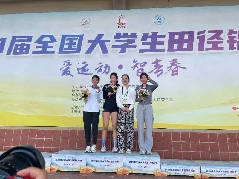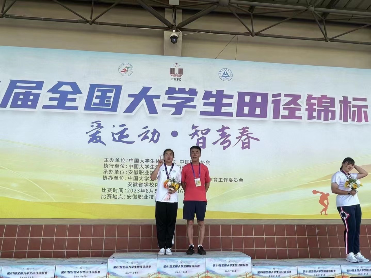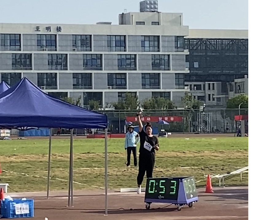 贾颜旭同学获女子丙组铅球和链球各第八名,成绩分别是铅球14.28米和链球31.44米
