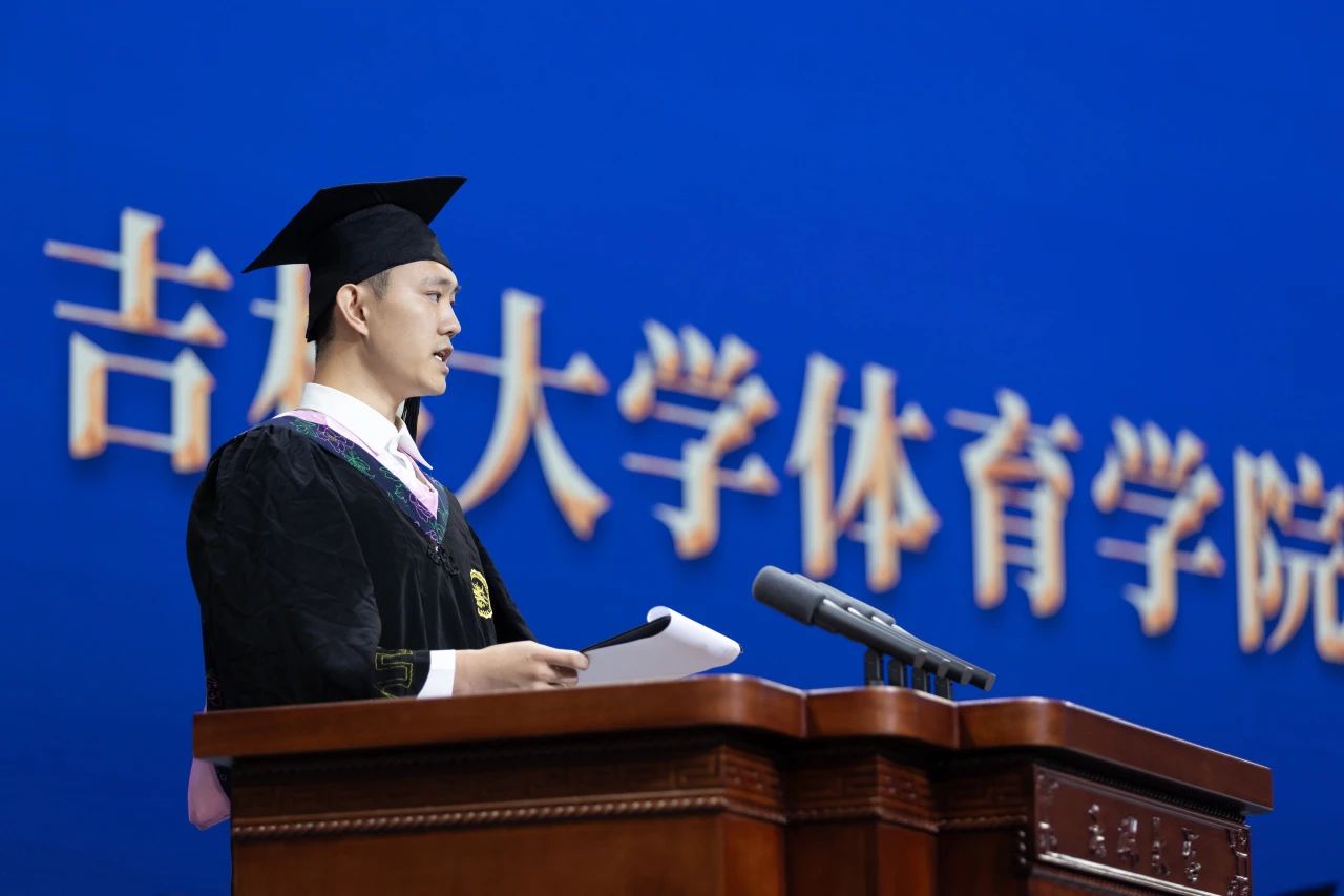 优秀本科毕业生代表张家祯发言,“全体本科毕业生们将在未来的道路上能够拥抱自我,坚守信仰;拥抱理想,勇攀高峰。以体育精神为引领,书写人生新篇章,创造更美好的未来。”优秀硕士毕业生代表修文丽发言,“2024届全体硕士毕业生将秉承‘博文强体,厚德仁育,严谨治学,创新兴院’的院训。立志为体育强国的建设注入一份力量,以奋斗谱写青春的壮丽华章。”教师代表杨长明代表全体教师发言,“愿毕业生们永葆青春,永葆一颗不断进取之心,直面真实的世界,直面每一个人,勇敢的走出校门,走向社会,走出国门,走向世界。”