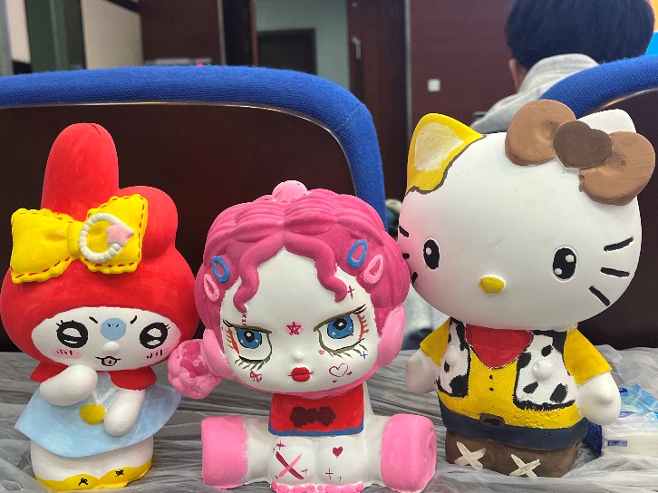 学生的沟通与理解,加深彼此的友谊,拓宽了他们的社交圈。同时彩绘石膏娃娃环节进行了不同的分组,情侣组可以选择情侣CP卡通形象进行涂鸦,增进彼此间的情感交流;友谊组则可以选择友情CP卡通形象,加深同学间的友谊;个人组则可以自由选择个人喜爱的卡通形象进行涂鸦,展现个性风采。