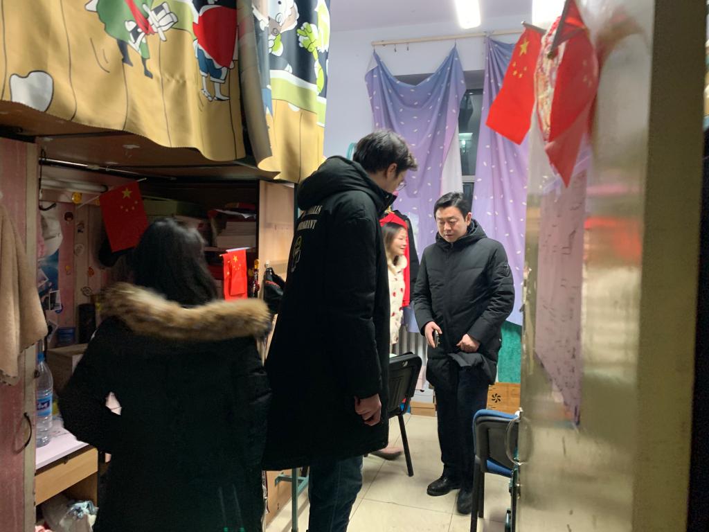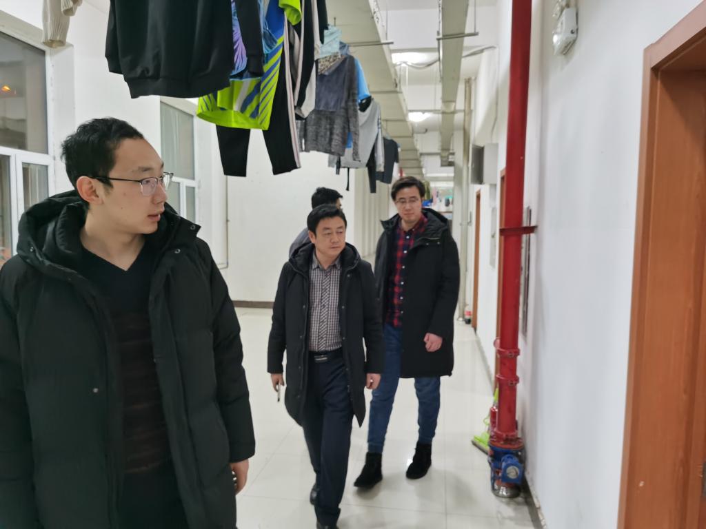 党委副书记兼副院长田进,辅导员宫勖能、魏铭泽带领学生干部一起分年级分层次,利用两个多小时时间对全院的寝室进行了大检查。