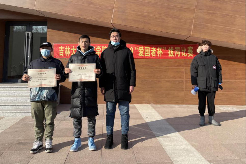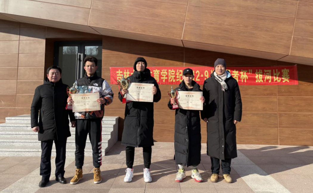 老师为获奖集体颁发了奖杯和荣誉证书,并合影留念。最后,田书记对此次活动做了简要总结,他再次强调了举办此类活动的目的和意义,并希望大家将这种团结进取、顽强拼搏、拧成一股绳的精神运用到今后的学习、工作、生活中去。至此,历时两天的拔河比赛圆满落下帷幕。