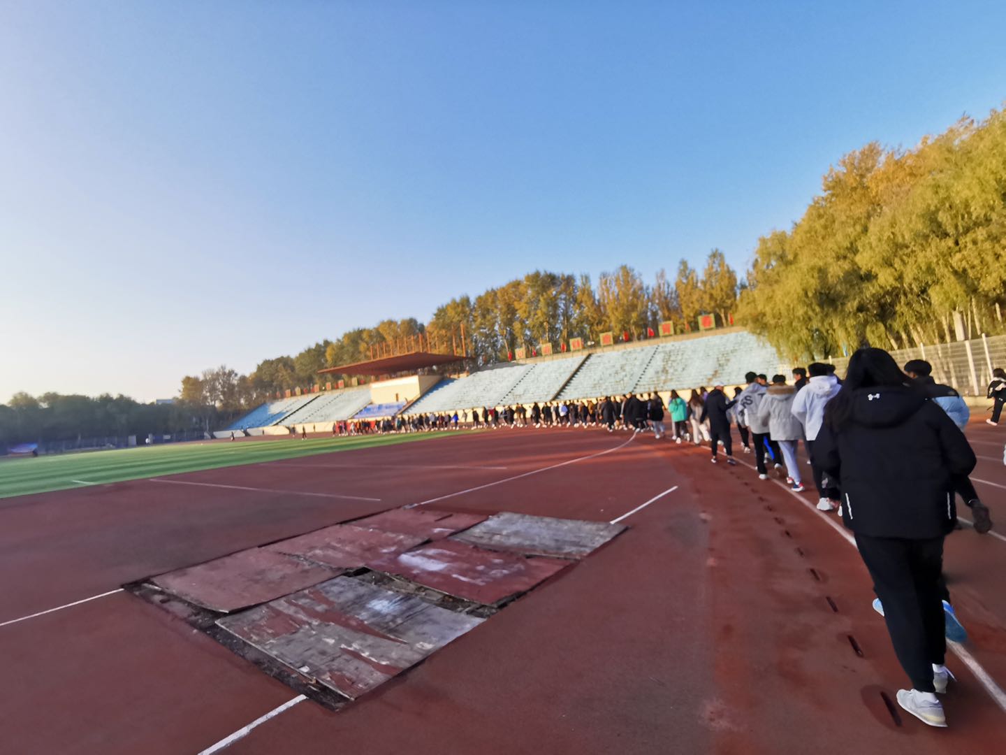 早操工作安排,2019级、2020级全体学生每天早上6点35分在田径场有序集合完毕,由学生干部严格按照标准执行考勤工作后带领同学们进行早操。早操内容形式丰富,包含慢跑、队列练习、体能素质练习、广播体操、军体拳等,各年级以班级为单位,随着各班体委口号声响起,同学们都以自己最饱满的热情投入了早操健身活动,队列整齐,步伐矫健,口号嘹亮,充分展现了当代大学生蓬勃的朝气和青春活力。极速赛车