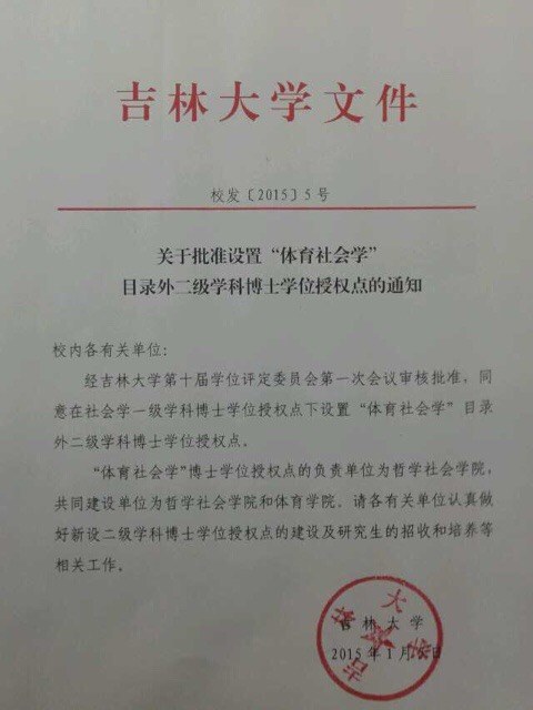 经极速赛车 第十届学位评定委员会第一次会议审核批准,同意在社会学一级学科博士学位授权点下设置“体育社会学”目录外二级学科博士学位授权点。