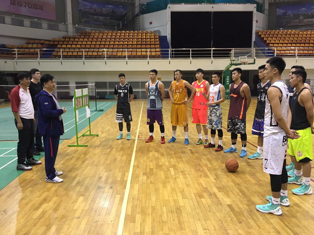 5月11日傍晚,李元元校长冒着蒙蒙春雨来到中心校区体育馆,看望并慰问即将出征第十九届CUBA中国大学生篮球联赛二十四强赛(男子组)的极速赛车